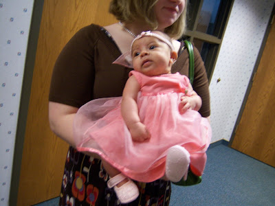 Aria in one of my Mom's dresses from when she was a baby.Waiting for Daddy to get done with his appointment at the VA.